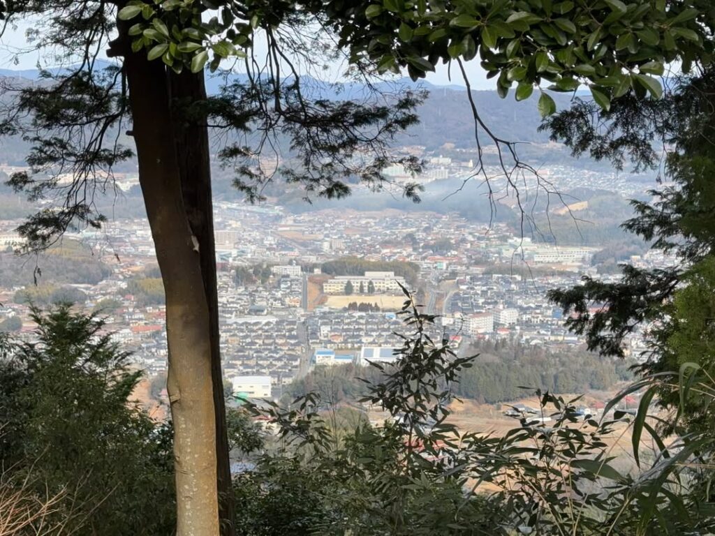 白鳥山から西高屋駅周辺を望む。