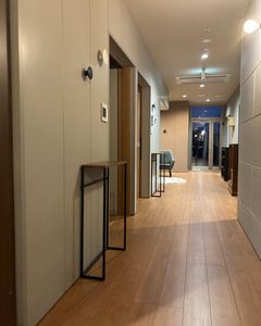 これまでの施設と違って、ここは廊下や水回りに手すりが無いんです。代わりに、棚などが置いてあり、手すりの代わりになっています。